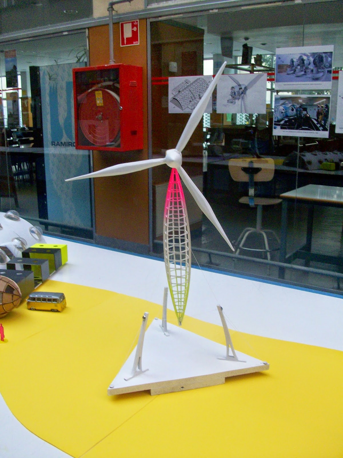 También se presentaba un aerogenerador con un mástil de tensegrity, que recuerda la escultura Skylon, erigida en londres con motivo de una exposición en 1951.